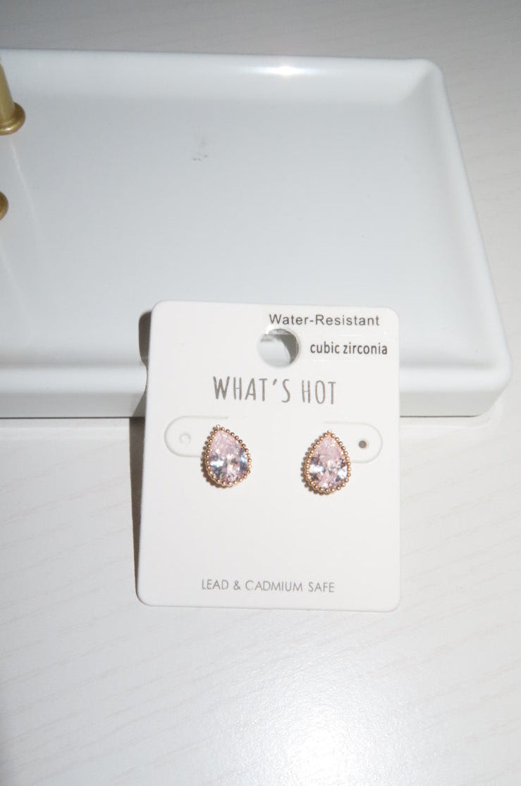 Add a touch of everyday elegance with the Teagan Studs, featuring small CZ teardrop stones that catch the light beautifully. Their water-resistant design makes them perfect for daily wear — simple, chic, and timeless.